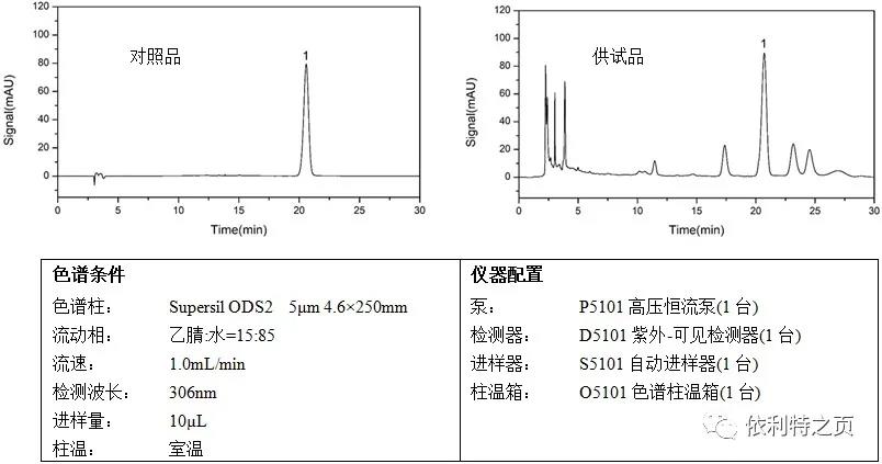 2. 供試品溶液的製備:取裝量差異項下的本品,研細,取約0.15g,精密稱定,精密加入稀乙醇25mL,稱定重量,超聲處理(功率360W,頻率50kHz)15分鍾,取出,放冷,稱定重量,用稀乙醇補足減失的重量,搖勻,濾過,取續濾液,即得。