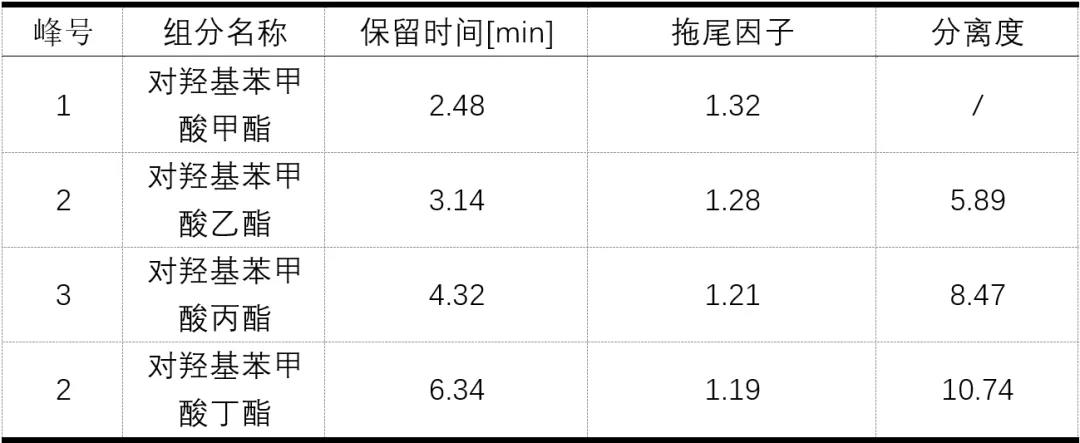 小黄鸭福利导航最新款的EClassical3200小黄鸭官网下载搭配經典的SinoPak C18色譜柱,對食品添加劑中的對羥基苯甲酸甲酯、對羥基苯甲酸乙酯、對羥基苯甲酸丙酯和對羥基苯甲酸丙酯分析、分離度非常好,滿足定性定量分析的需求。