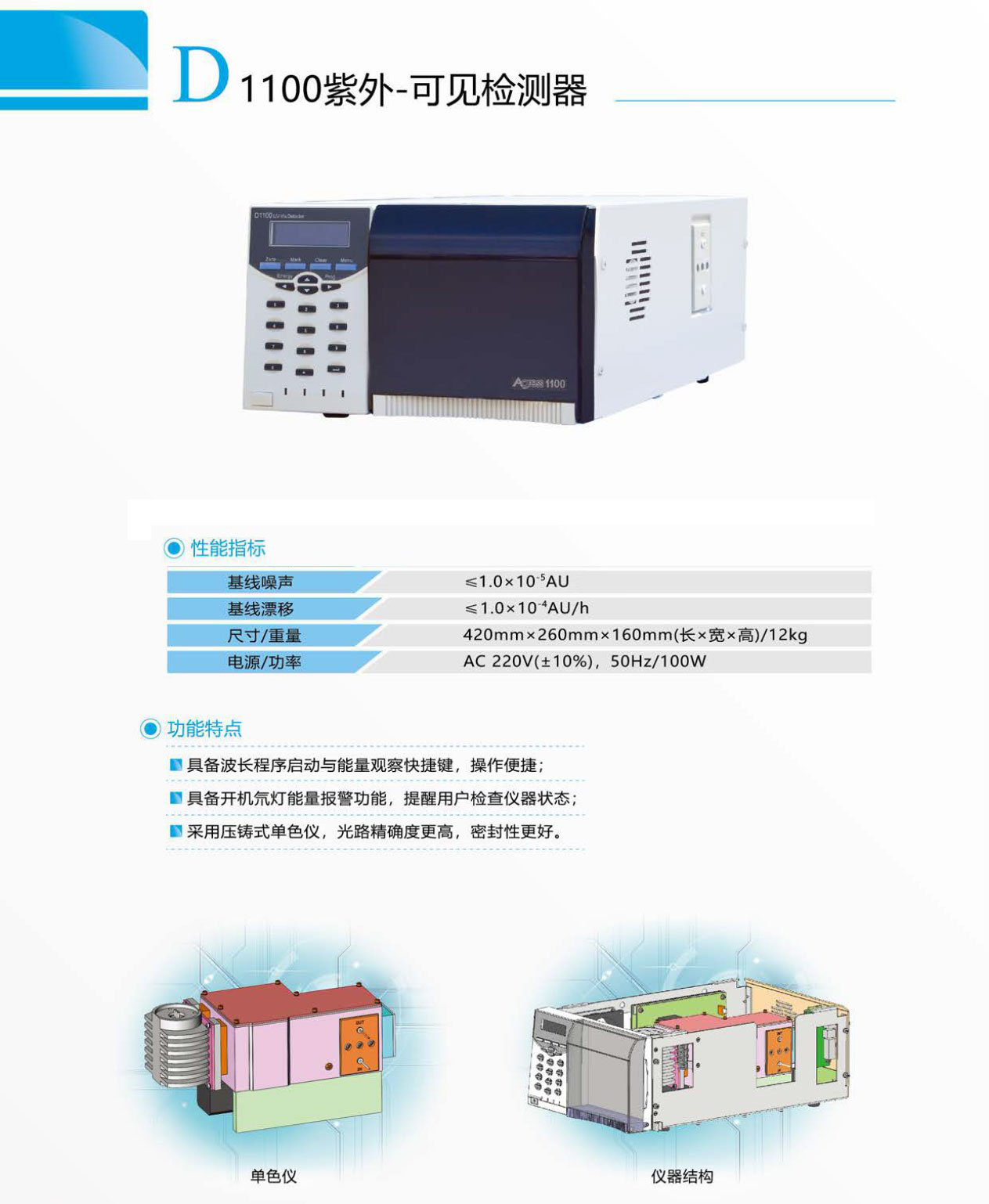 ● 采用壓鑄式單色儀,光路精確度更高,密封性更好。